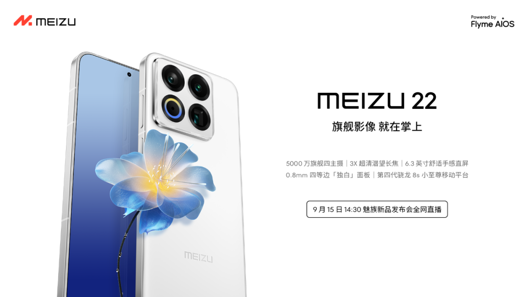 魅族 22 手机定档 9 月 15 日发布:采用第四代骁龙 8s 小至尊移动平台