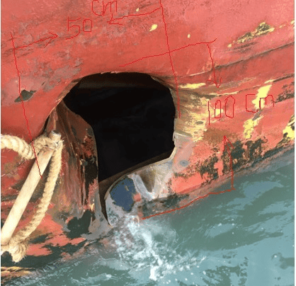 事故概况:2020年4月6日0250时,从韩国釜山驶往天津的香港籍集装箱船“C”轮在曹妃甸港东南约30海里水域航行时,与唐山中心渔港籍渔船“J3”轮发生碰撞,事故造成“C”轮右舷第4边舱有100*50CM破洞,“J3”轮艏尖舱进水。